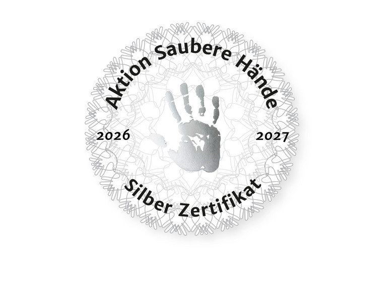 Die Immanuel Klinik Märkische Schweiz erhält für den Zeitraum 2026/2027 erneut das Silber-Zertifikat der bundesweiten „Aktion Saubere Hände“.
